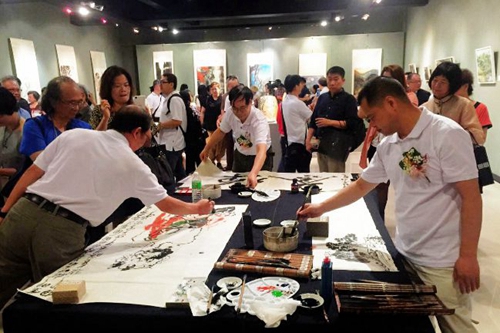 藝術(shù)家們現(xiàn)場潑墨創(chuàng)作