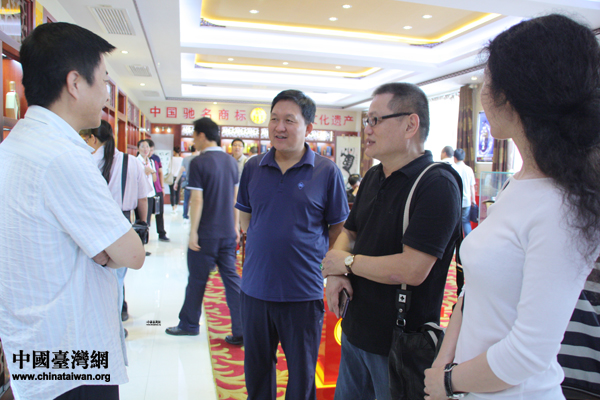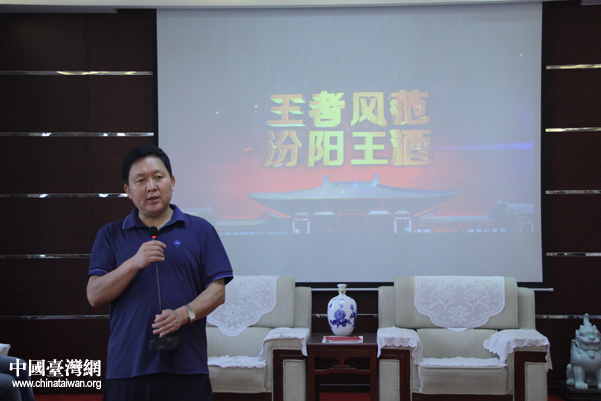 汾陽王酒業(yè)有限公司董事長王再武向臺(tái)灣記者介紹企業(yè)發(fā)展情況。(中國臺(tái)灣網(wǎng) 楊永青 攝)