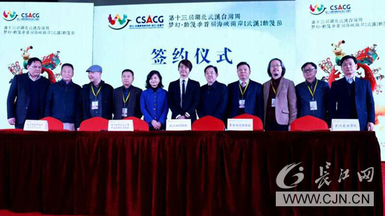 隨后,主持人邀請(qǐng)海峽兩岸機(jī)構(gòu)及企業(yè)代表上臺(tái)進(jìn)行簽約儀式。余培俠等嘉賓上臺(tái)見(jiàn)證。武漢動(dòng)漫協(xié)會(huì)與臺(tái)灣動(dòng)漫文化創(chuàng)意產(chǎn)業(yè)發(fā)展交流協(xié)會(huì)、武漢東湖學(xué)院與香港動(dòng)漫畫協(xié)會(huì)、武漢博潤(rùn)通文化科技股份有限公司與臺(tái)灣冉色斯動(dòng)畫股份有限公司六家單位分別簽署戰(zhàn)略合作協(xié)議,將在行業(yè)組織協(xié)作、產(chǎn)學(xué)研交互融合、業(yè)務(wù)拓展開發(fā)等方面開展廣泛合作與對(duì)接。見(jiàn)證嘉賓表示,簽約儀式象征著海峽兩岸動(dòng)漫文化創(chuàng)意產(chǎn)業(yè)融合發(fā)展的新起點(diǎn)。