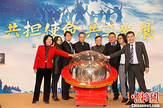 11月29日,兩岸青年創(chuàng)業(yè)資訊服務(wù)平臺啟動儀式在北京舉行,臺灣青年赴大陸創(chuàng)業(yè)資訊包正式上線。圖為兩岸嘉賓共同啟動資訊包。當(dāng)天,民革中央在北京發(fā)起成立兩岸青年創(chuàng)新大聯(lián)盟。中新社記者 陳小愿 攝