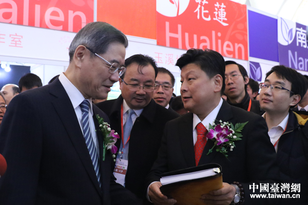 12月24日,臺灣8縣市農(nóng)特產(chǎn)品展銷暨旅游推介洽談會在北京展覽館舉行。中共中央臺辦、國務(wù)院臺辦主任張志軍,北京市人民政府副市長王寧,中國國民黨副主席陳鎮(zhèn)湘、臺灣新北、新竹、苗栗、花蓮、南投、臺東、金門及連江等縣市負責(zé)人共同出席開幕式等活動。(中國臺灣網(wǎng) 朱煉 攝)