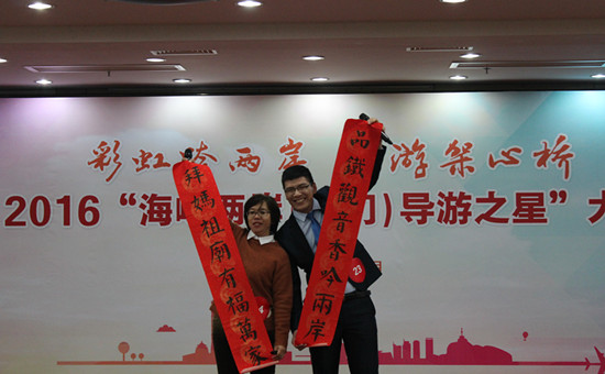 12月31日,2016年海峽兩岸(廈門)導游之星大賽在廈門圓滿落幕。此次大賽匯聚24名來自廈門、臺灣的選手共同參與,加深兩岸導游業(yè)界的交流。大賽比技巧,拼服務,重交流,在內容和形式上,更加注重促進兩岸導游技能和服務方面深度交流與合作;在獎項設置上,兩岸選手既有合作又有競爭,將海峽兩岸一衣帶水的深厚情誼娓娓道來。兩岸導游通過大賽實現(xiàn)旅游交流新突破,探索兩岸旅游交流合作新經(jīng)驗。