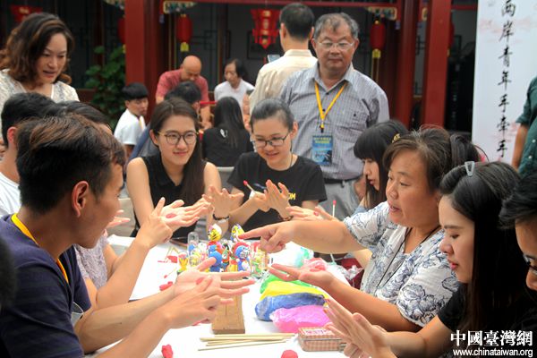 “中華兒女科技體驗營”參訪北京市,與非物質文化遺產(chǎn)傳承人一起捏面人。(中國臺灣網(wǎng) 李杰 攝)