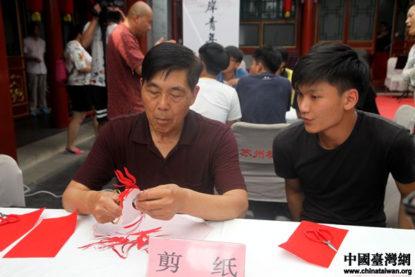 臺灣大學生向非物質文化遺產(chǎn)傳承人學習剪紙。(中國臺灣網(wǎng) 李杰 攝)
