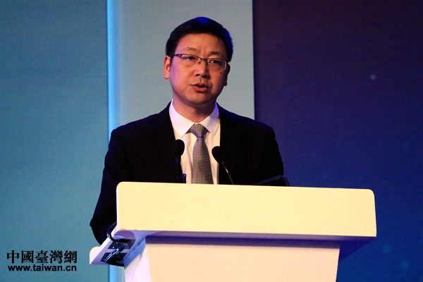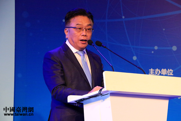 全國臺企聯(lián)榮譽(yù)會長郭山輝在開幕式上致辭。(中國臺灣網(wǎng) 李岳 攝)