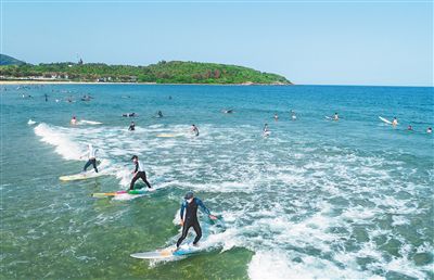 萬(wàn)寧日月灣,沖浪客在享受假日時(shí)光。記者 袁琛 攝