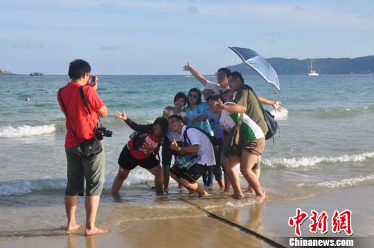 臺(tái)北海南同鄉(xiāng)會(huì)的青年學(xué)生在亞龍灣合影。 周鳳婷 攝