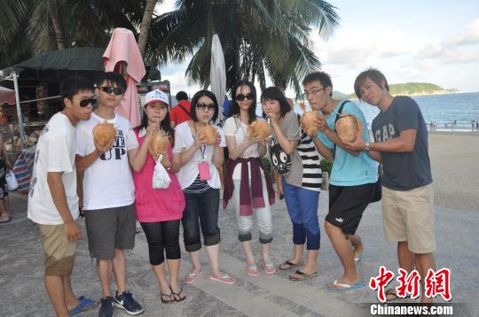 來(lái)自臺(tái)灣臺(tái)南嘉南藥理科技大學(xué)、臺(tái)灣大學(xué)、臺(tái)灣成功大學(xué)等大學(xué)的32名青年學(xué)生和11名海南大學(xué)的營(yíng)員們?nèi)涨皡⒂^三亞蝴蝶谷,踏上了天下第一灣亞龍灣的細(xì)軟沙灘。