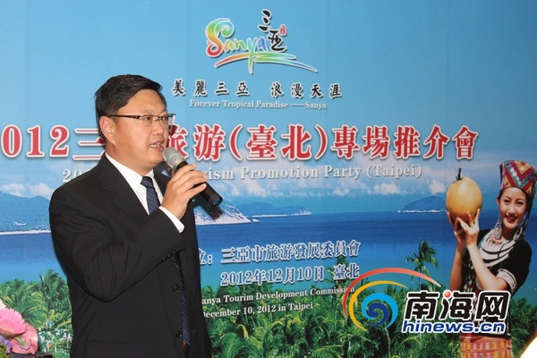 12月9日,三亞旅游推介會在臺北市舉行。三亞市副秘書長董永泉致辭(南海網(wǎng)記者馬偉元攝)