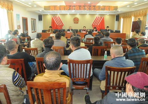 海南省臺辦經(jīng)濟協(xié)調處處長朱玉華在授課時表示,海南與臺灣隔海相望,近年來瓊臺漁業(yè)相關交流頻繁,海洋漁業(yè)合作成為瓊臺交流合作的重要特色之一。為保證我省漁民漁船的生產(chǎn)安全,在漁民中開展涉臺安全生產(chǎn)宣講十分必要。近期,為作好沿海漁民的涉臺知識教育,海南省海洋與漁業(yè)廳和省臺辦共同編寫了《沿海漁船民教育問答》手冊。該手冊精選了部分沿海漁民船民亟需了解的涉臺知識、漁業(yè)安全生產(chǎn)常識和有關法規(guī)等問答題,已印發(fā)5000份并正向漁民船民分發(fā)。