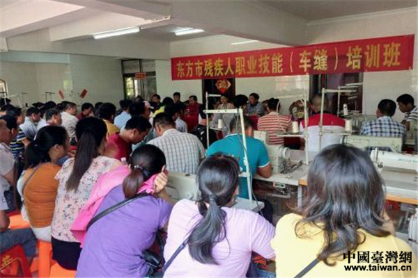 東方市殘疾人職業(yè)技能(車縫)培訓(xùn)班開班暨東方市鴻盛殘疾人服務(wù)有限公司開業(yè)。(圖片來源:海南省臺聯(lián))