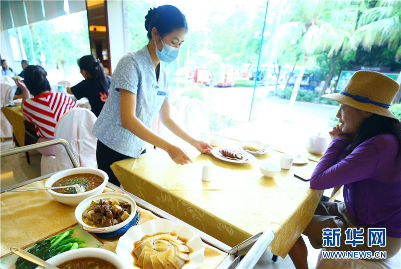 8月12日,游客在三亞南山文化旅游區(qū)緣起樓素齋自助餐廳用餐。新華網(wǎng)發(fā)(陳文武攝)