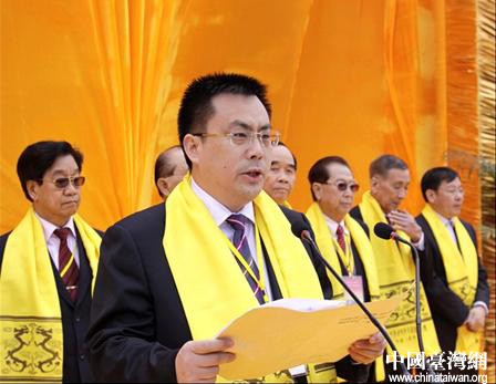臺灣省李氏宗親總會代表團(tuán)團(tuán)長李蘭鳳在恭讀祭先祖老子文。圖片來源:周口市臺辦