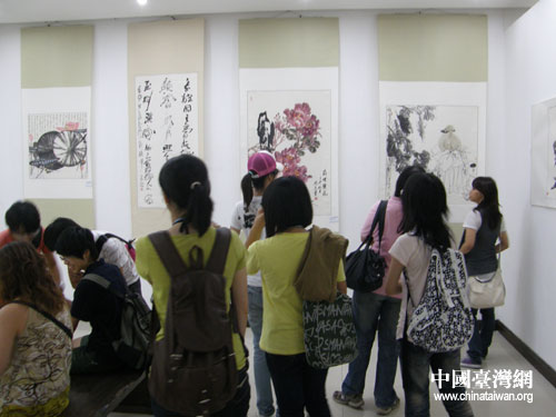 臺灣青年學生參觀洛陽畫院作品展。圖片來源:洛陽市臺辦