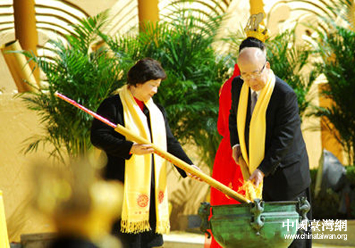 受邀參加拜祖大典的中國(guó)國(guó)民黨榮譽(yù)主席吳伯雄及其夫人敬獻(xiàn)了頭香。