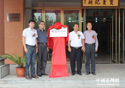 成功學(xué)院院領(lǐng)導(dǎo)及嘉賓為杜甫研究所成立揭牌。(圖片來源:鄭州市臺辦)