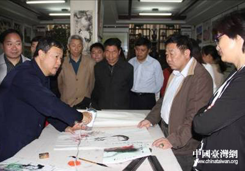 李沃源先生現(xiàn)場作畫。(圖片來源:漯河市臺辦)