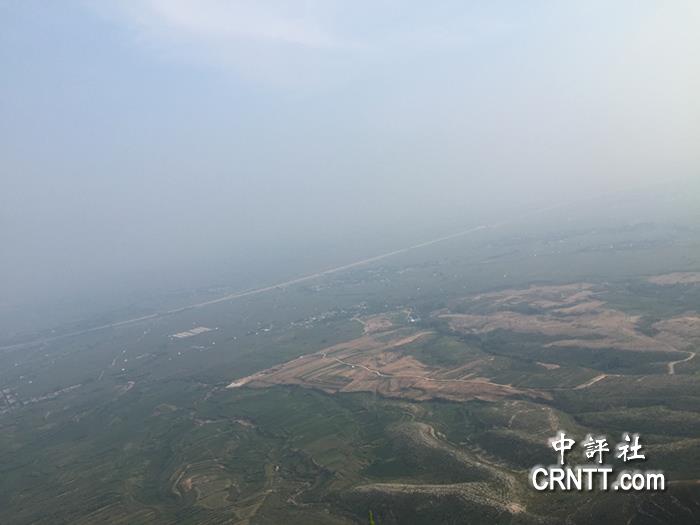 從山頂望下,可見(jiàn)南水北調(diào)中線工程橫穿華北平原而過(guò)。(中評(píng)社)