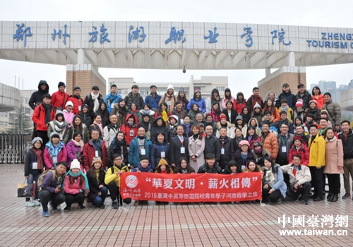 中國臺灣網(wǎng)11月23日鄭州訊 11月21日上午,由海峽兩岸旅游交流協(xié)會、河南省旅游協(xié)會主辦的主題為“華夏文明?薪火相傳”臺灣青年學(xué)生河南修學(xué)交流活動在鄭州旅游職業(yè)學(xué)院舉行, 來自臺灣7所高校的91名師生參加了交流活動。
