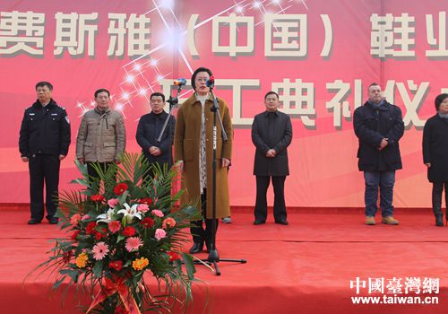 中國臺灣網(wǎng)1月10日周口訊 1月9日上午,臺資費(fèi)斯雅高端制鞋項(xiàng)目開工儀式在周口市西華縣舉行。意大利費(fèi)斯雅品牌亞洲區(qū)副總裁恩地,周口市委常委、統(tǒng)戰(zhàn)部長方婷、商務(wù)局局長閆淑娟、西華縣縣長田慶杰等出席開工儀式。方婷下達(dá)開工令。