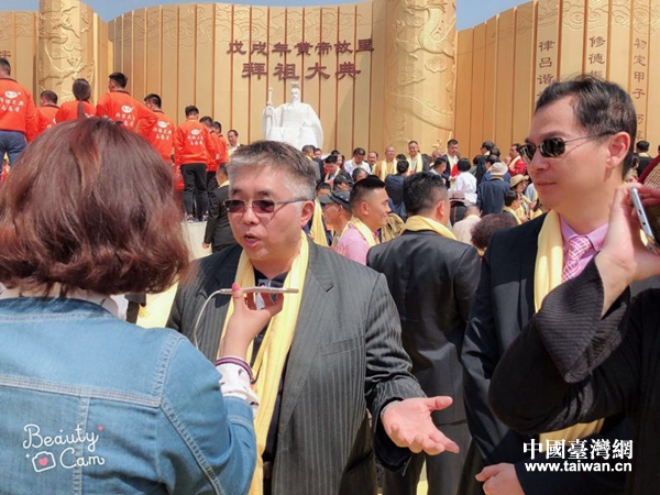 在拜祖大典現(xiàn)場(chǎng)接受媒體參訪。(圖片來(lái)源:駐馬店臺(tái)辦)
