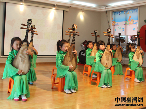 少數(shù)名族幼兒園的小朋友表演琵琶合奏《春江花月夜》。(中國(guó)臺(tái)灣網(wǎng) 芮益芳 攝)