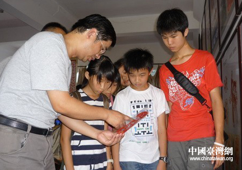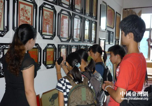 中國臺(tái)灣網(wǎng)7月29日孝感消息 日前,來自臺(tái)灣的五名小朋友到湖北孝感市雕花剪紙研究所參觀雕花剪紙工藝。臺(tái)灣小朋友們興致勃勃的參觀了剪紙工藝品展覽,對中華民間藝術(shù)的博大精深無比贊嘆。