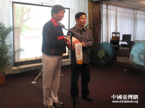 鄧務(wù)貴與吳金寶互贈(zèng)禮品(湖北省臺(tái)辦 曾祥俊 攝)