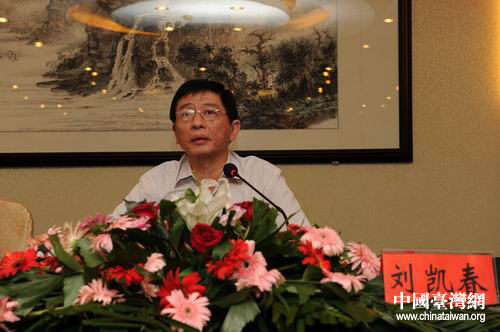 湖北省臺辦主任劉凱春作工作報告。(湖北省臺辦陸勝 攝)