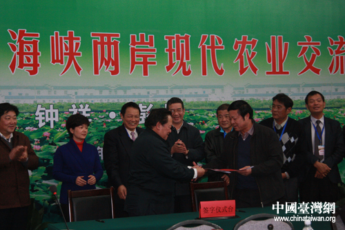 兩岸農(nóng)業(yè)界代表簽署協(xié)議。(中國(guó)臺(tái)灣網(wǎng) 黃艷艷 攝)