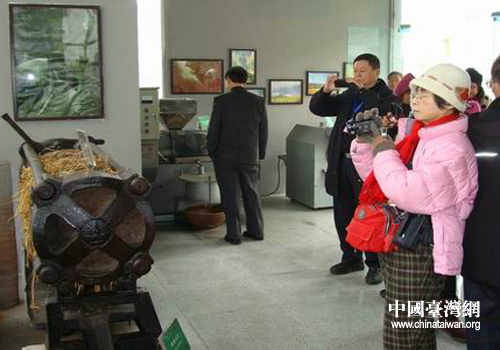在鐘祥市彭墩村農(nóng)耕文化博覽園,斑駁的木門(mén)、滄桑的石磨、古老的風(fēng)車(chē)、沉重的蓑衣、藤條編織的簸箕、竹蔑條編成的曬席……都在訴說(shuō)沉重而悠遠(yuǎn)的歷史。臺(tái)灣客人在木門(mén)前的閉目沉思、輕松連貫推動(dòng)石磨的勞動(dòng)樂(lè)趣、轉(zhuǎn)動(dòng)風(fēng)車(chē)吹來(lái)的徐徐清風(fēng),這一切都讓臺(tái)灣農(nóng)業(yè)專(zhuān)家沉浸于那段刀耕火種、肩背人扛的農(nóng)耕歲月。