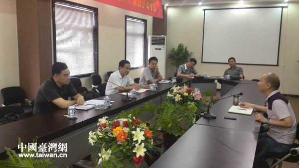 襄陽市財政局副局長王天寶與襄陽臺商工業(yè)園負責(zé)人座談。(圖片來源:襄陽臺辦)