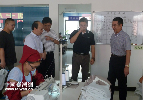湖北省臺辦副主任涂陽斌(右一)到湖北雅姿服飾調研。(襄陽市臺辦 崔有理 攝)