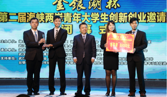 “金銀湖杯”第二屆海峽兩岸青年大學(xué)生創(chuàng)新創(chuàng)業(yè)邀請(qǐng)賽于11月16日上午在武漢輕工大學(xué)圓滿落幕。省政府黨組成員童道馳出席活動(dòng)并為獲得特等獎(jiǎng)團(tuán)隊(duì)頒獎(jiǎng),省政府副秘書長聶昌斌、團(tuán)省委書記、省青聯(lián)主席張桂華,團(tuán)中央統(tǒng)戰(zhàn)部副部長、全國青聯(lián)副秘書長黃志剛,武漢輕工大學(xué)黨委書記肖波,武漢輕工大學(xué)黨委副書記、校長劉民鋼,團(tuán)省委副書記、省青聯(lián)副主席張澍,武漢市臺(tái)辦主任陳明權(quán)、團(tuán)武漢市委書記、市青聯(lián)主席葉文靜,武漢臨空港經(jīng)開區(qū)管委會(huì)常務(wù)副主任、東西湖區(qū)區(qū)長楊澤發(fā),武漢輕工大學(xué)黨委副書記劉豐林,國民黨青年部主任、臺(tái)灣中華青年企業(yè)家協(xié)會(huì)理事長張淵翔,臺(tái)灣中華青年企業(yè)家協(xié)會(huì)榮譽(yù)理事長陳建騏,國民黨中央委員、鄂臺(tái)青年交流合作協(xié)會(huì)會(huì)長陳維德,國民黨中央委員、臺(tái)灣青年聯(lián)合會(huì)理事長何溢誠,臺(tái)灣青創(chuàng)總會(huì)副主委黃維鈞,臺(tái)灣青商總會(huì)常務(wù)副會(huì)長呂忠穎等出席閉幕式。臺(tái)灣青創(chuàng)總會(huì)、臺(tái)灣青商總會(huì)、省臺(tái)辦、省青聯(lián)及武漢臨空港區(qū)、武漢輕工大學(xué)等相關(guān)部門和鄂臺(tái)兩地青年大學(xué)生500余人參加閉幕式。中央、省級(jí)及武漢市級(jí)20多家媒體聚焦此次活動(dòng)。