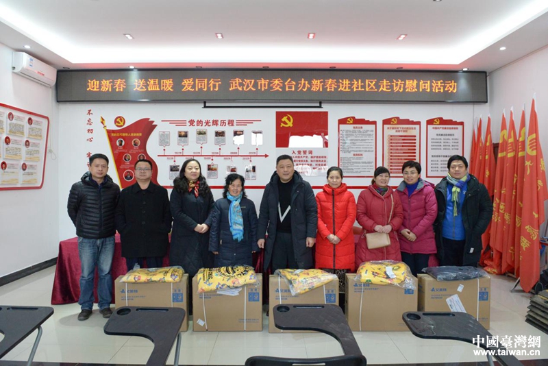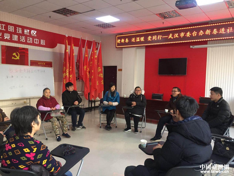 武漢市委臺辦黨支部開展迎新春進社區(qū)走訪慰問活動。(圖片來源:武漢市臺辦)