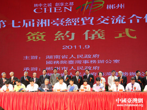 第七屆湘臺經(jīng)貿(mào)交流合作會簽約儀式。圖片來源:湖南省臺辦
