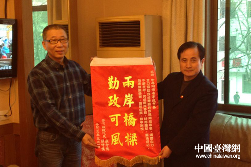 顧介儒、顧仲儒給常德市臺辦送來錦旗。(圖片來源:常德市臺辦)