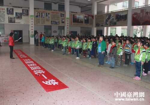 儀式上,老師和學(xué)生代表分別作了發(fā)言。紅衛(wèi)小學(xué)校長楊建輝表示,學(xué)校將廣泛開展涉臺主題征文、知識講座、競賽、書畫和圖片展等系列宣傳教育活動,搭建全校師生掌握黨的對臺方針政策、知曉臺灣歷史、了解寶島風(fēng)土人情的平臺,并通過網(wǎng)絡(luò)、書信等媒介,加強(qiáng)與臺灣小朋友的交流互動,積極探索基礎(chǔ)教育領(lǐng)域涉臺教育新模式。