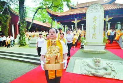 同拜中華始祖,共祈賜福兩岸。6月6日,海峽兩岸各界人士齊聚中華民族始祖炎帝神農(nóng)氏陵寢地——湖南株洲炎陵縣鹿原陂炎帝祖陵大殿,舉行主題為“神農(nóng)賜!砂豆层濉钡摹耙椅茨晟褶r(nóng)大帝祖廟圣駕臺(tái)灣巡境賜!逼瘃{儀式。未來(lái)10天,炎帝圣駕將巡境臺(tái)灣北、中、南41座神農(nóng)宮廟,為兩岸民眾賜福。