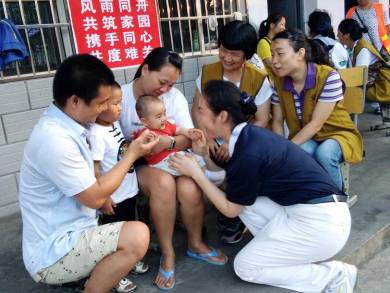 志愿者舉行心靈安撫活動,與受災群眾手拉手一同合唱《我們是一家人》、《謝謝你們》。