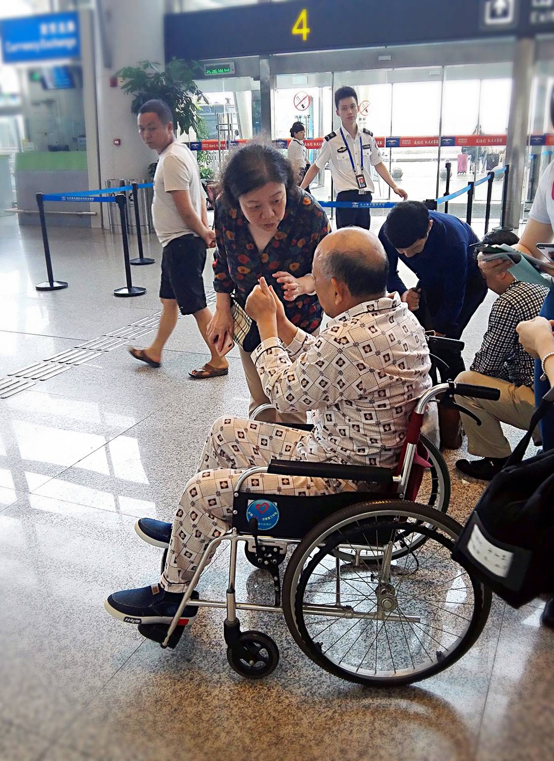 正當要辦理登機手續(xù)時,楊先生身體狀況不佳,機場方表示可能無法登機,在出具相關(guān)證明后,經(jīng)過省、市臺辦與機場方、醫(yī)院方長達2個多小時的協(xié)處溝通后,機場終于同意為楊先生辦理登機手續(xù),并破例在航班上安排專人看護楊先生。下午4時許,坐在輪椅上的楊先生在醫(yī)護人員的陪同下進行登機,楊斯津先生露出了久違的笑容,并舉起雙手握拳豎起大拇指為在場所有工作人員點贊。(中國臺灣網(wǎng)株洲市臺辦通訊員 高輝 顏梅尹媛)
