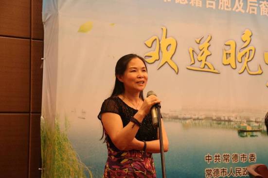 參訪團(tuán)團(tuán)長、臺灣湖南常德同鄉(xiāng)會會長肖云霞女士發(fā)言