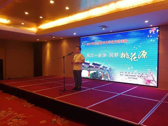 在9月1日晚歡送晚宴上,常德市人民政府臺灣事務(wù)辦公室副主任張琳表示,此次活動時(shí)間雖短,但情誼深重;希望各位臺灣師生能夠?qū)⒊5律剿拿利惻c常德市民的友善帶回臺灣,同時(shí)也希望能夠在未來的某一天再次與寶島師生相聚桃花源。