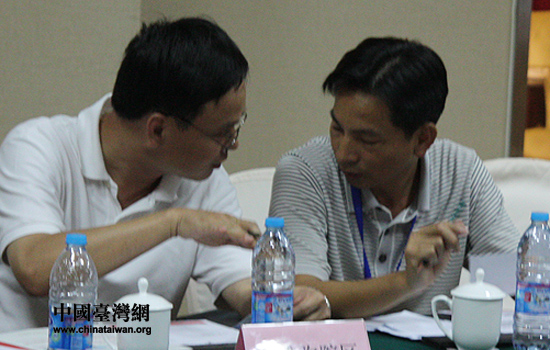 18日晚,第二屆兩岸鄉(xiāng)村座談舉行兩岸結(jié)對(duì)子鄉(xiāng)村見(jiàn)面會(huì),兩岸30個(gè)鄉(xiāng)村代表參加。圖為結(jié)成對(duì)子的兩岸鄉(xiāng)村代表在交談。(中國(guó)臺(tái)灣網(wǎng) 張弛 攝)