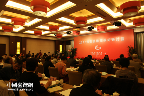 中國(guó)臺(tái)灣網(wǎng)10月24日常州消息 日前,2012常臺(tái)吳稚暉學(xué)術(shù)研討會(huì)在江蘇常州雪堰成功舉辦,中國(guó)國(guó)民黨榮譽(yù)主席吳伯雄為研討會(huì)題詞并發(fā)來(lái)賀電。江蘇省政協(xié)副主席范燕青、省海外聯(lián)誼會(huì)常務(wù)副會(huì)長(zhǎng)周和平、常州市委副書記戴源等省市有關(guān)部門領(lǐng)導(dǎo),全球粥會(huì)世界總會(huì)長(zhǎng)、臺(tái)灣吳稚暉學(xué)術(shù)研究中心主任,海峽兩岸和諧文化交流協(xié)進(jìn)會(huì)會(huì)長(zhǎng)陸炳文、吳稚暉后人吳湘城、吳湘岱等兩岸專家學(xué)者出席了研討會(huì)。