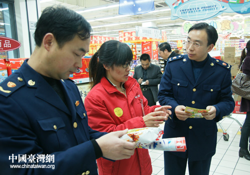 東臺工商局在東臺大潤發(fā)商業(yè)有限公司現(xiàn)場指導(dǎo)企業(yè)加強(qiáng)食品安全管理。(圖片來源:東臺市臺辦)