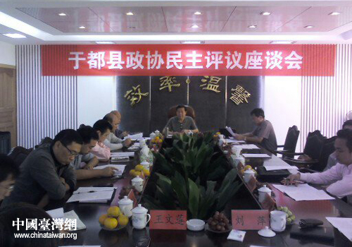 于都縣政協(xié)民主評(píng)議座談會(huì)現(xiàn)場(chǎng)。(圖片來(lái)源:于都縣臺(tái)辦)