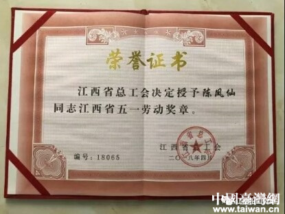 喜訊!鉛山臺資企業(yè)職工陳鳳仙獲得江西省五一勞動獎?wù)聵s譽稱號
