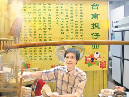 56歲在寶島夜市賣臺南擔(dān)仔面的陳國財(cái)說,他在臺南的擔(dān)仔面很早以前就收攤了,到北京是來開創(chuàng)第二春,擔(dān)仔面一碗賣12元人民幣,試賣期間,一天都賣一百多碗。為了保持原汁原味,醬料都是臺灣運(yùn)來的,他相信“臺灣的口味”在北京一定會受歡迎。