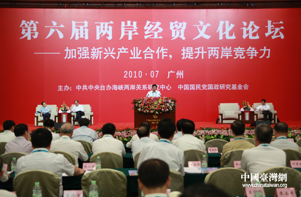 中國(guó)臺(tái)灣網(wǎng)7月10日廣州消息 第六屆兩岸經(jīng)貿(mào)文化論壇10日上午在廣州開(kāi)幕。在開(kāi)幕式后的主題演講環(huán)節(jié),兩岸資深專(zhuān)家將目光共同投向兩岸產(chǎn)業(yè)合作的新趨勢(shì)與新方向。雙方普遍認(rèn)為:兩岸將未來(lái)經(jīng)濟(jì)社會(huì)發(fā)展的重點(diǎn)均聚焦于新興產(chǎn)業(yè),應(yīng)該把握機(jī)遇,共同推動(dòng)兩岸新興產(chǎn)業(yè)合作進(jìn)軍全球市場(chǎng)的愿景。